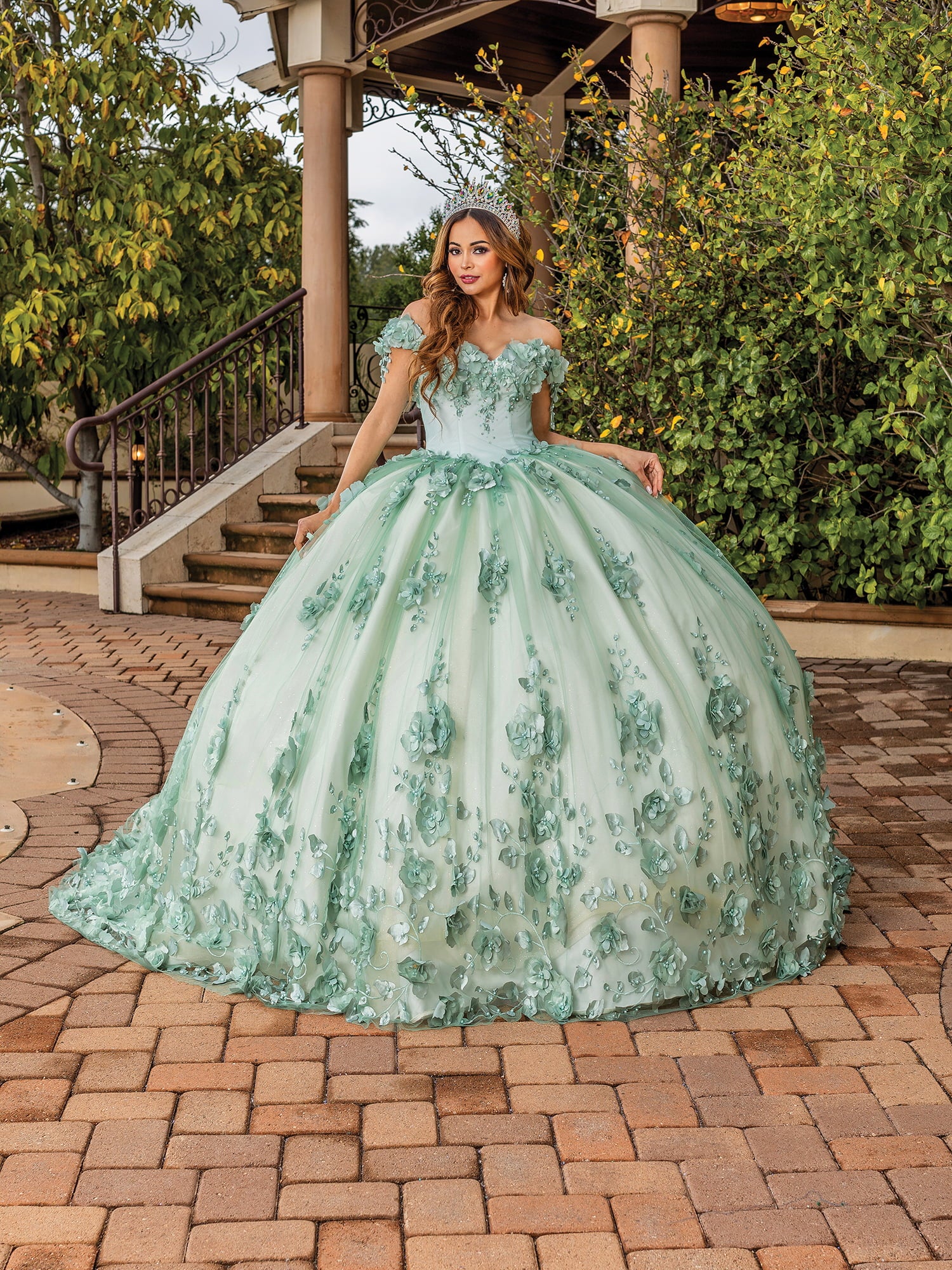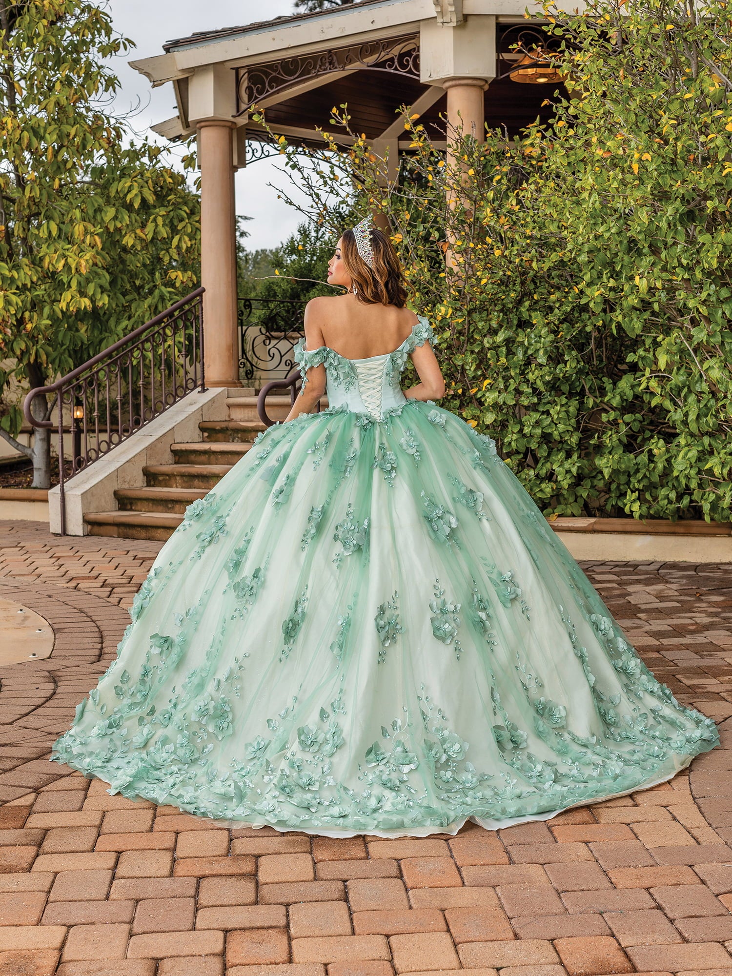 Off-the-Shoulder Tulle Ballgown with Floral Embroidered Appliques and Corset Back Quinceanera dress