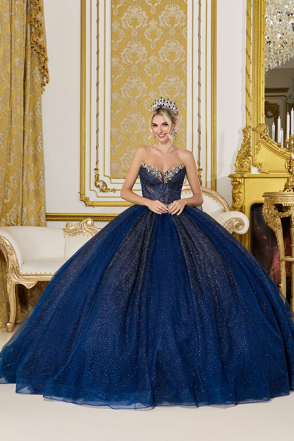Strapless Sweetheart Quinceanera Dress with Beaded Bodice and Sparkling Ball Gown Skirt
