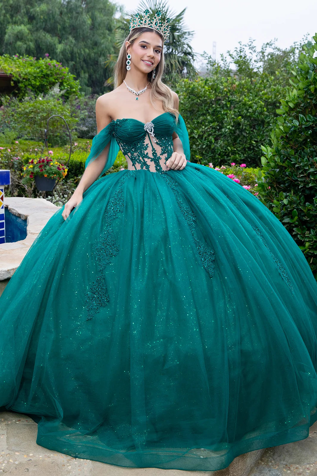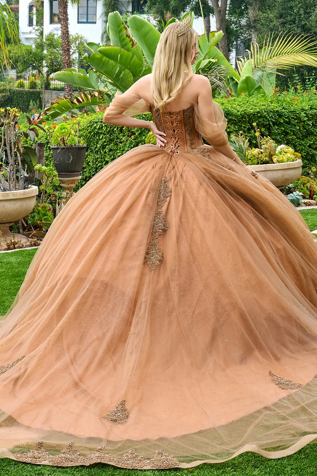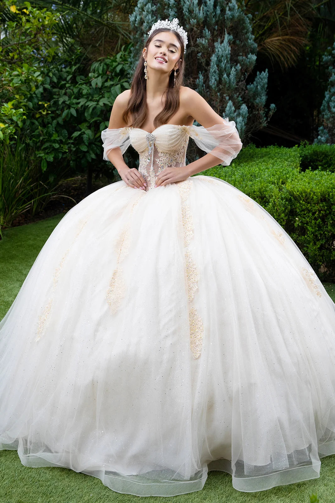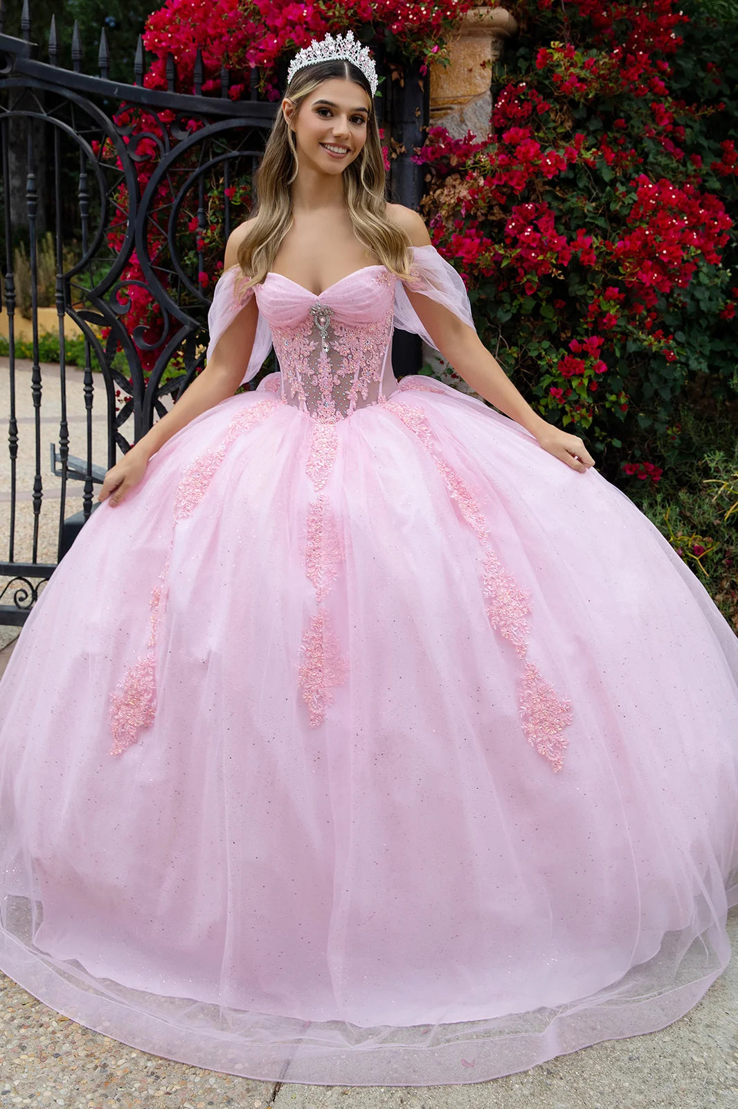 Sheer Bodice Lace Embellished Glitter Mesh Sweetheart Quinceanera Dress