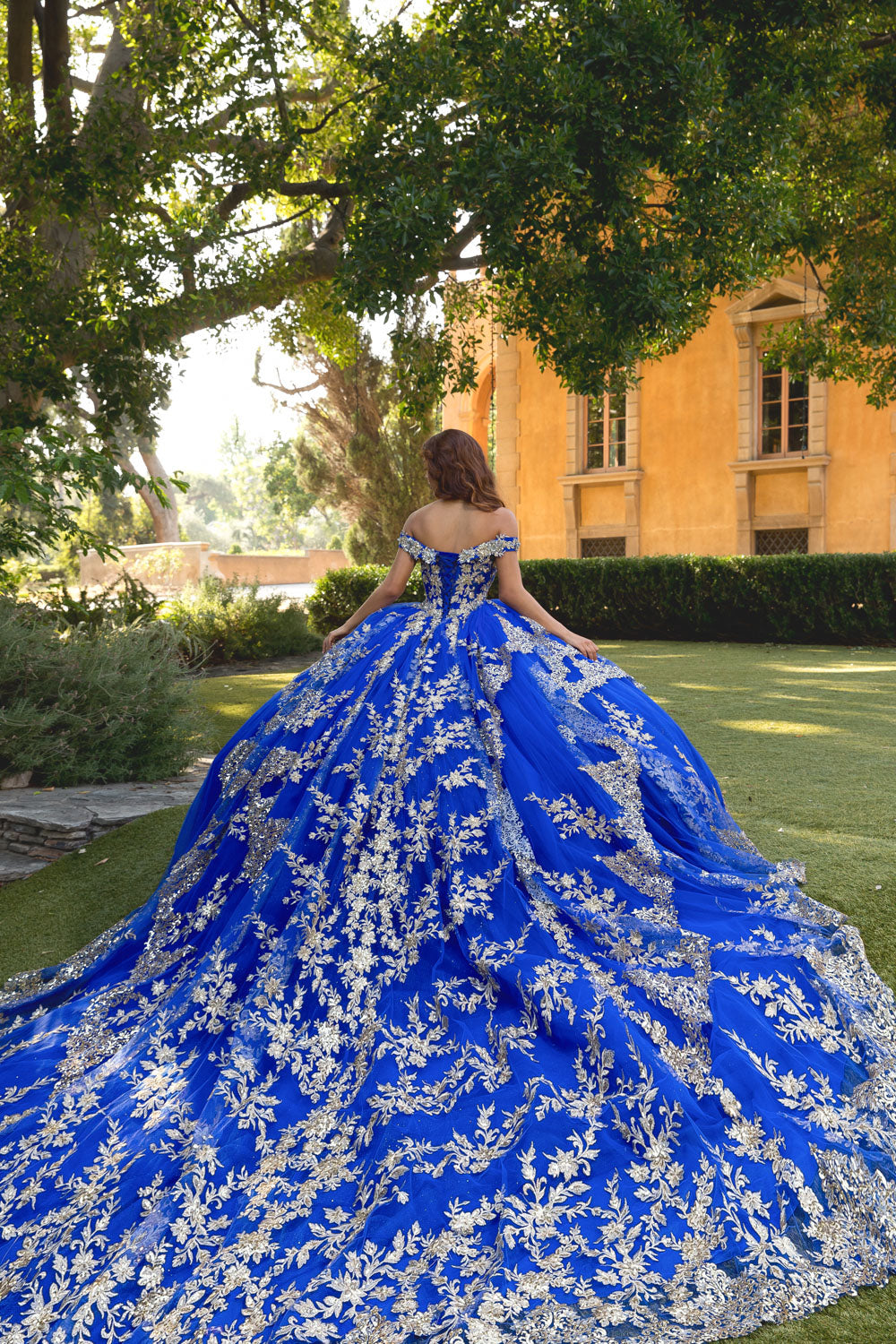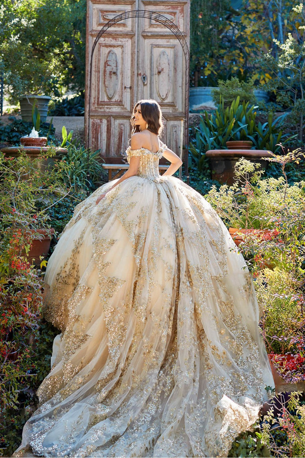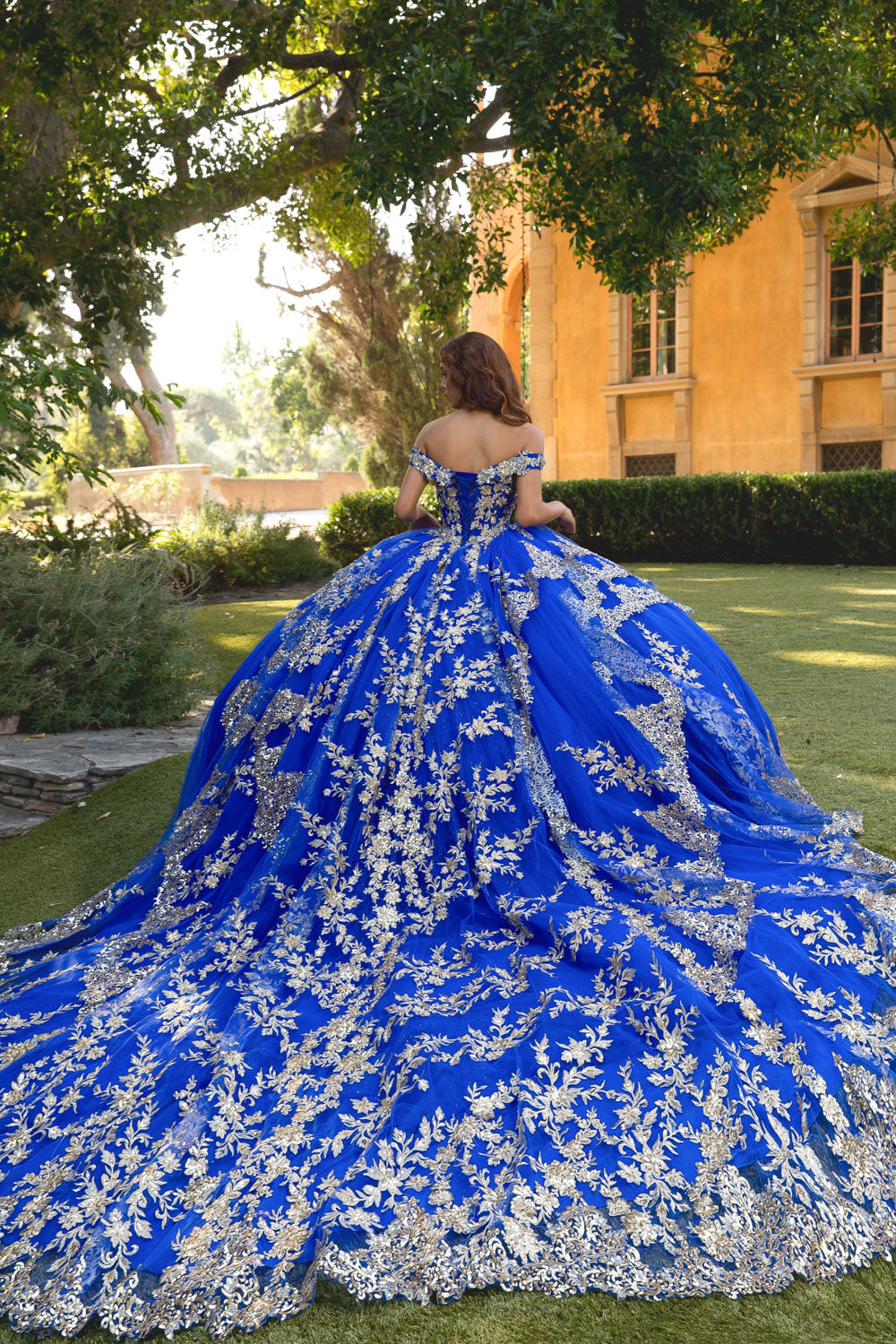 Make a grand entrance with our Bedazzled Off The Shoulder Cathedral Train dress. This gown is a true showstopper that will make you shine. The sweet off-the-shoulder neckline adds a touch of glamour, while the glitter tulle overlay shimmers with every step you take. Get ready to steal the spotlight at your Quinceañera with our Bedazzled Off The Shoulder Cathedral Train dress.