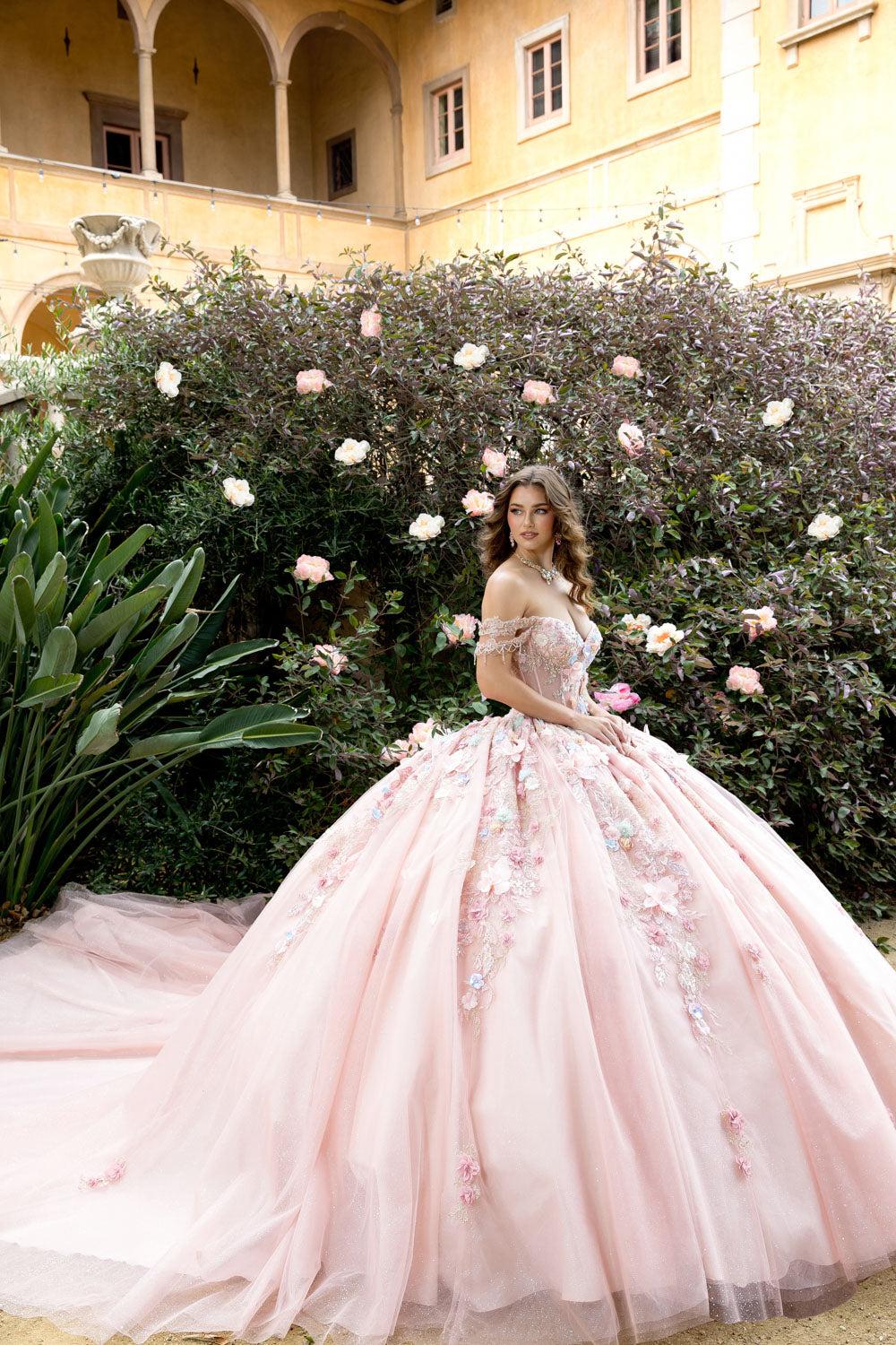Flowing into a cathedral train, this ball gown exudes sophistication and grandeur, making it the ultimate choice for quinceañeras in 2025 and 2026. Whether you're embracing the latest trends or setting your own, this dress is a statement piece that blends tradition with contemporary style.